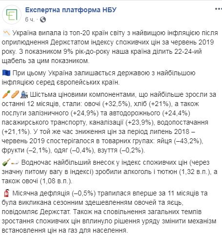 Украина больше не входит в ТОП-20 стран мира, которые имеют самый высокий уровень инфляции. Об этом сообщает экспертная платформа Национального банка Украины (НБУ) на своей странице в сети Facebook со ссылкой на данные Госстата.