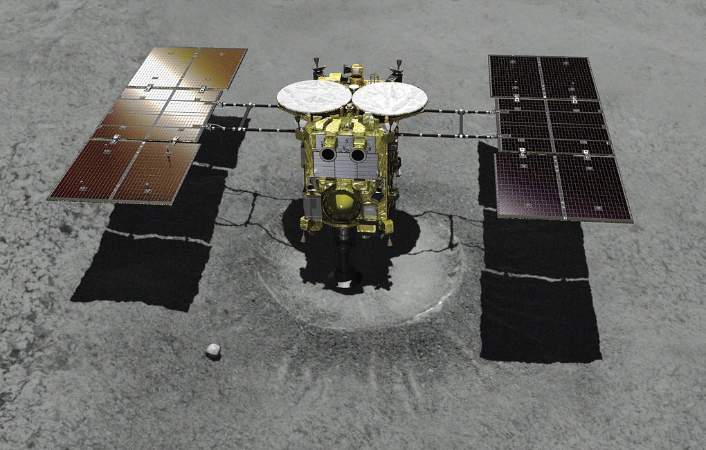 Зонд Хаябуса-2 на астероиде, фото: JAXA