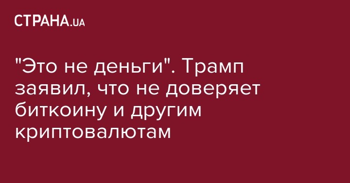 Президент США Дональд Трамп резко высказался против всех криптовалют. Он заявил, что не доверяет криптовалютам и другим не советует. Об этом хозяин Белого дома написал в своем Twitter.