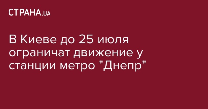 В Киеве с пятницы, 12 июля, по 25 июля частично ограничат движение транспорта у станции метро "Днепр". Это вызвано проведением ремонтных работ. Об этом сообщает пресс-служба Киевской городской государственной администрации (КГГА).
