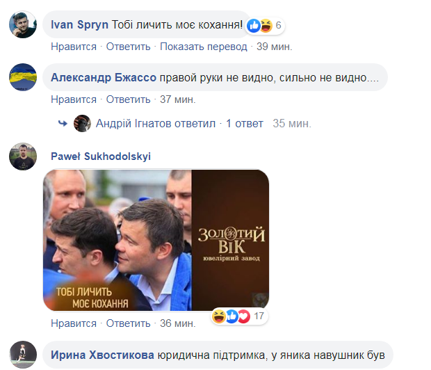 Многие пользователи соцсети тут же вспомнили слоган из рекламы известной ювелирной марки, в которой некогда снимался Зеленский: "Тебе идет моя любовь". На эту тему пошутила журналистка "Страны" Ольга Волкова.
