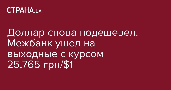 Доллар снова подешевел. Межбанк ушел на выходные с курсом 25,765 грн/$1
