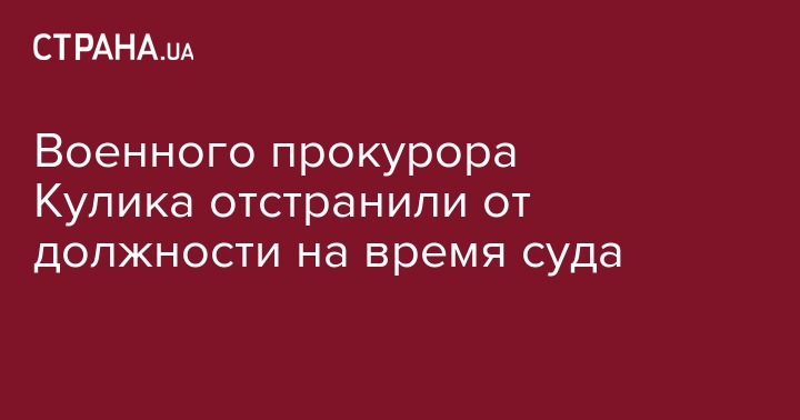 Соломенский районный суд Киевав ходе судебрного разбирательства принял решение об отстранении от исполнения служебных обязанностей вплоть до 4 сентября военного прокурора сил АТО Константина Кулика, который подозревается в незаконном обогащении, сообщает "УНИАН".