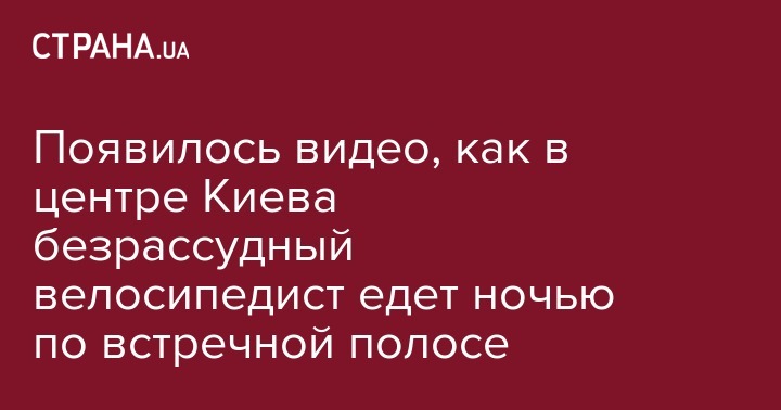 Появилось видео, как в центре Киева безрассудный велосипедист едет ночью по встречной полосе