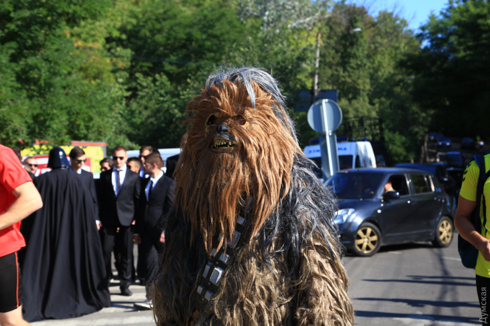 "Вейдера" сопровождали люди в костюмах Чубакки и галактических штурмовиков. Около часа ожидания ни к чему не привели - президент Украины не приехал.