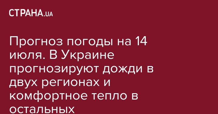 В воскресенье, 14 июля, в Западном, Северном и ряде областей Центрального региона синоптики прогнозируют дождь. На остальной территории страны - переменная облачность, без осадков. Об этом сообщает пресс-служба Укргидрометцентра.