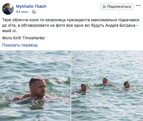"Твое лицо, когда ты – охранник президента – максимально подкачался к лету, а обсуждать на фото все равно будут Андрея Богдана – который нет".