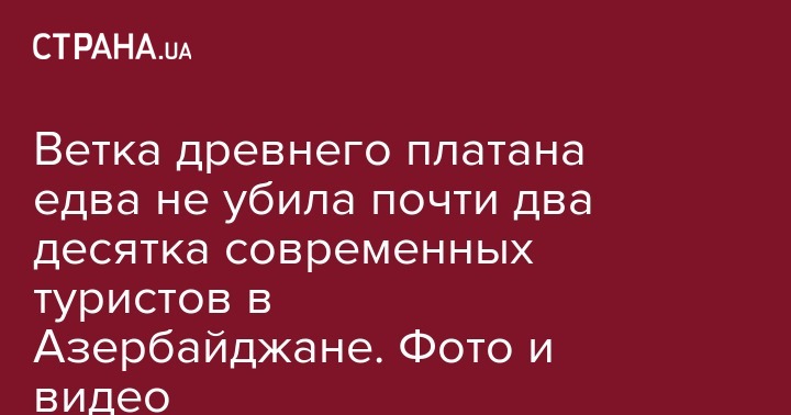 В субботу, 14 июля, в Азербайджане упала ветвь 500-летнего платана, из-за чего пострадало 19 человек. Об этом сообщает "Интерфакс-Азербайджан" со ссылкой на Государственное агентство по туризму.