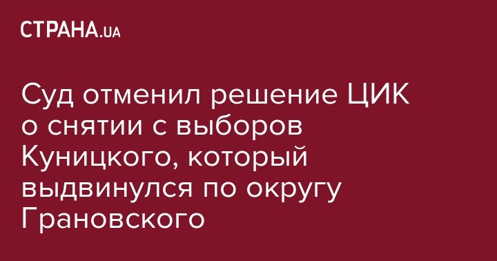 Куницкий заявил, что ЦИК приняла политически мотивированное решение о снятии его с выборов в интересах другого кандидата по этому округу Александра Грановского, и что членам ЦИК, по его информации, звонил лично предыдущий президент Украины, лидер партии "Европейская солидарность" Петр Порошенко.