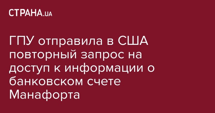ГПУ отправила в США повторный запрос на доступ к информации о банковском счете Манафорта
