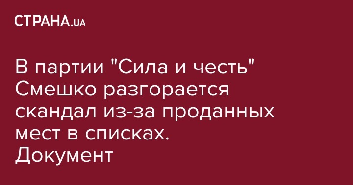 В партии Игоря Смешко "Сила и честь" продолжается крупный скандал, связанный с тем, что первые места в списке на внеочередные парламентские выборы 2019 года были проданы полностью "чужим" людям, которые никакого отношения к ней ранее не имели, пишет Обозреватель.