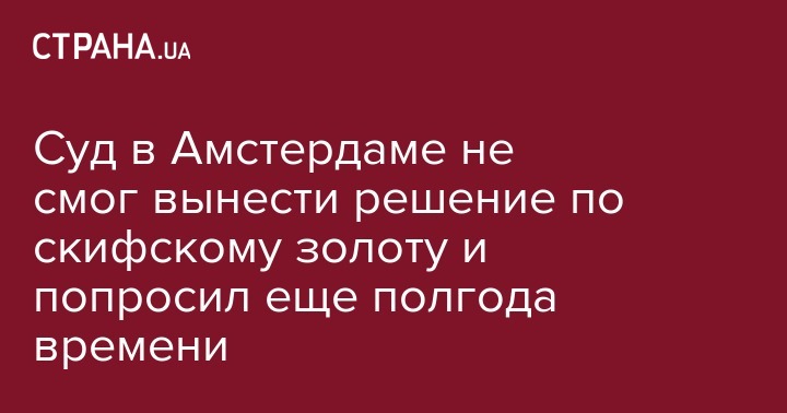Во вторник, 16 июля, Апелляционный суд Амстердама попросил дополнительную информацию по спору между Украиной и музеями Крыма о "скифском золоте", а окончательное решение может быть вынесено через 6-9 месяцев, передает Интерфакс.