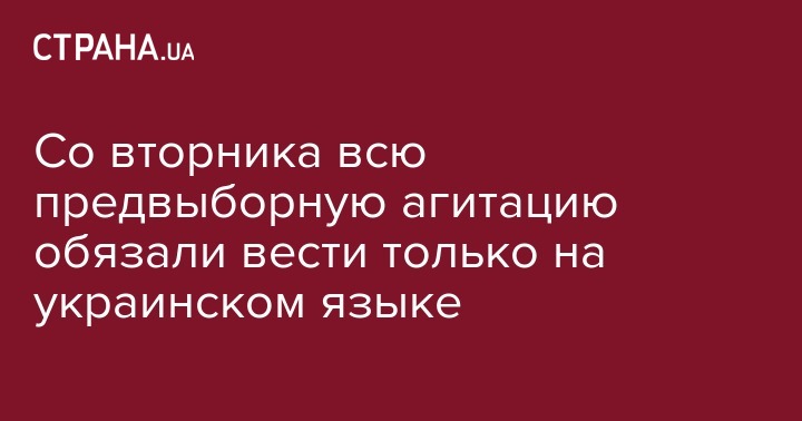 С 16 июля вступил в силу (за исключением отдельных положений о штрафах) закон о тотальной украинизации. Среди прочего, он определяет требования к материалам политической рекламы, распространяемой на телевидении, радио, в Интернете и печати в ходе избирательной компании. Об этом заявили в Нацсовете Украины по вопросам телевидения и радиовещания, передает Интерфакс-Украина