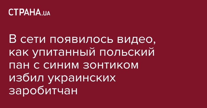 В сети появилось видео, как упитанный польский пан с синим зонтиком избил украинских заробитчан