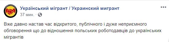 "Уже давно настало время открытого, публичного и очень неприятного обсуждения что к отношение польских работодателей к украинских мигрантов", - говорится в сообщении к видео.