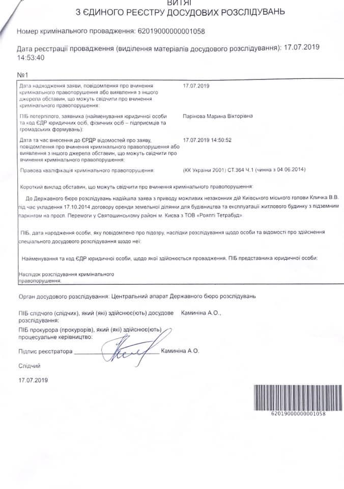 ГБР начало расследование возможных земельных махинаций Кличко. Документ