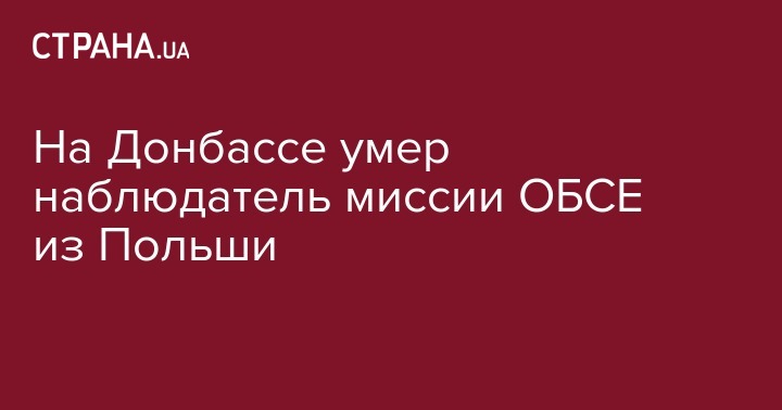 "С глубокой скорбью мы восприняли известие о смерти наблюдателя Специальной мониторинговой миссии ОБСЕ в Краматорске господина Чеслава Концкого. Посольство Республики Польша в Украине выражает слова глубокой скорби родным и близким умершего, а также сотрудникам миссии СММ ОБСЕ", - говорится в сообщении.