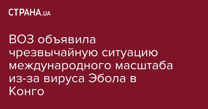 "Генеральный директор ВОЗ доктор Тедрос Адханом Гебрейесус объявил сегодня распространение вируса Эбола в Демократической Республике Конго (ДРК) чрезвычайной ситуацией в области здравоохранения, которая вызывает международное беспокойство", - отмечается в сообщении.