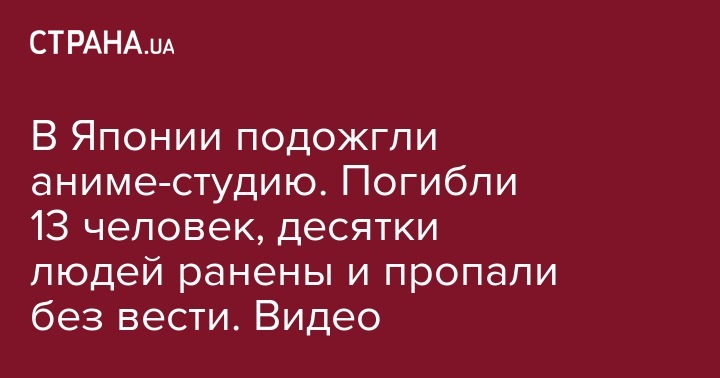 Утром в четверг, 18 июля, в аниме-студию Kyoto Animation Co в японском городе Киото ворвался мужчина и устроил поджог. В результате погибли не менее 13 человек. Об этом пишет ВВС.
