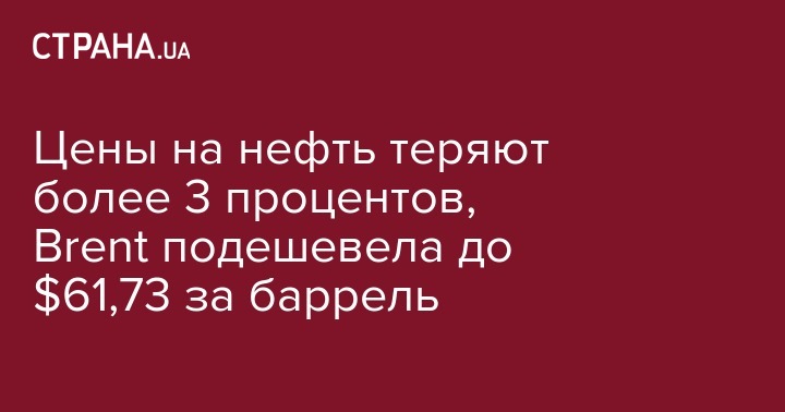 Стоимость сентябрьских фьючерсов на нефть Brent на лондонской бирже ICE Futures к 18:30 по киевскому времени в четверг составила $61,73 за баррель, что на $1,93 (3,03%) ниже уровня предыдущей сессии.
