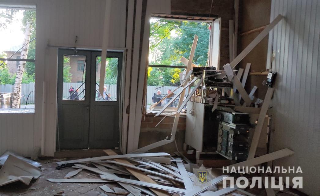Осмотром места происшествия по улице Вальтера в Харькове и на улице Шевченко в Люботине установлено, что внутри сейфового отсека банкомата произошел взрыв неизвестного вещества.