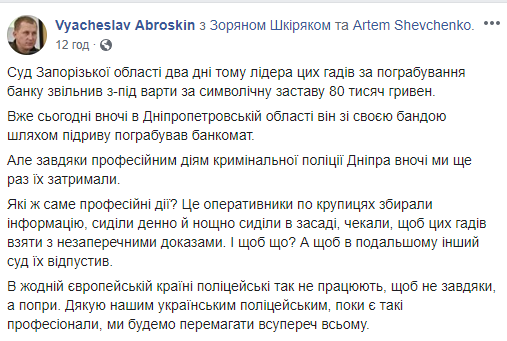 Видео ограбления разместил заместителя главы полиции Украины Вячеслав Аброськин.