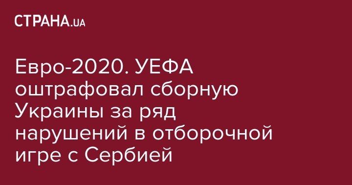 Дисциплинарный комитет УЕФА принял решение наказать Украину за ряд нарушений, которые были зафиксированы во время матча квалификации Евро-2020 против Сербии.