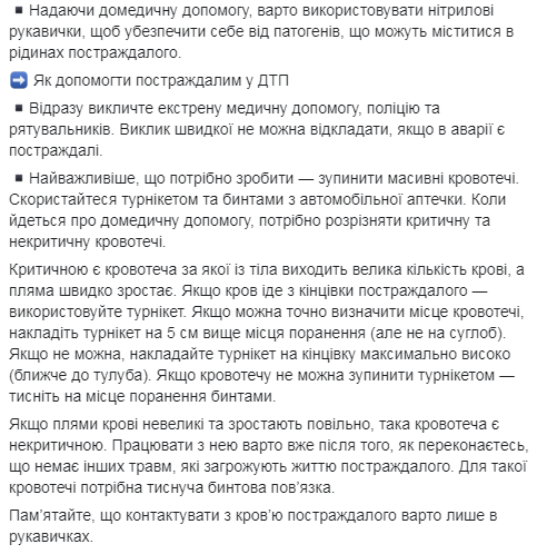 "Возите с собой аптечку и найдите время, чтобы пройти курсы первой помощи. Однажды эти навыки могут спасти кому-то жизнь", - посоветовала глава Минздрава Украины.