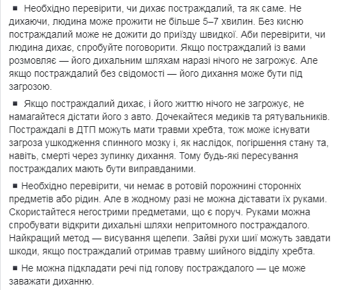 ▪️ Если пострадавший дышит, и его жизни ничего не угрожает, не пытайтесь достать его из авто. Дождитесь медиков и спасателей. Пострадавшие в ДТП могут иметь травмы позвоночника, поэтому может существовать угроза повреждения спинного мозга и, как следствие, ухудшение состояния и даже смерти из-за остановки дыхания. Поэтому любые передвижения пострадавших должны быть оправданными.