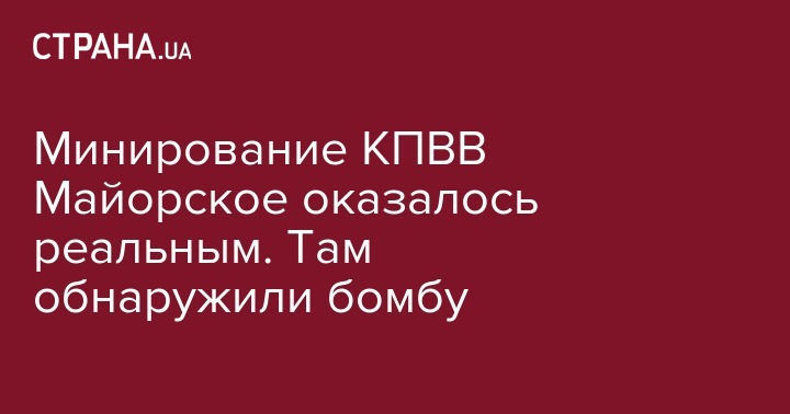 "ГСЧС инициирует вопрос о временном прекращении функционирования КПВВ "Майорское"… В ходе обследования территории возле КПВВ "Майорское" пиротехники нашли взрывоопасный предмет. С целью недопущения гибели и травмирования гражданского населения, которое пересекает КПВВ, территориальным подразделением ГСЧС инициирован вопрос временного прекращения функционирования КПВВ "Майорское" для дополнительного и тщательного обследования территории", - говорится в сообщении.