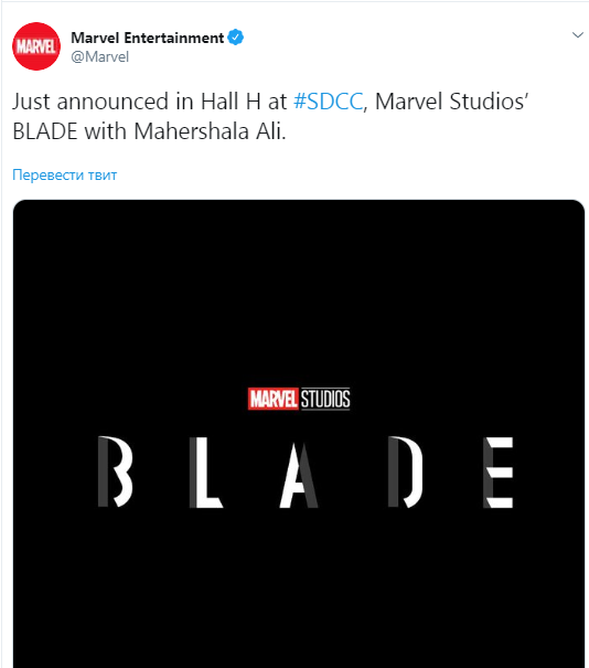 Американский актер Махершала Али сыграет истребителя вампиров Блейда в экранизации комиксов "Марвел". Об этом стала известно на международном фестивале Comic-Con в Сан-Диего, где студия Marvel анонсировала несколько кинопроектов ближайших лет.