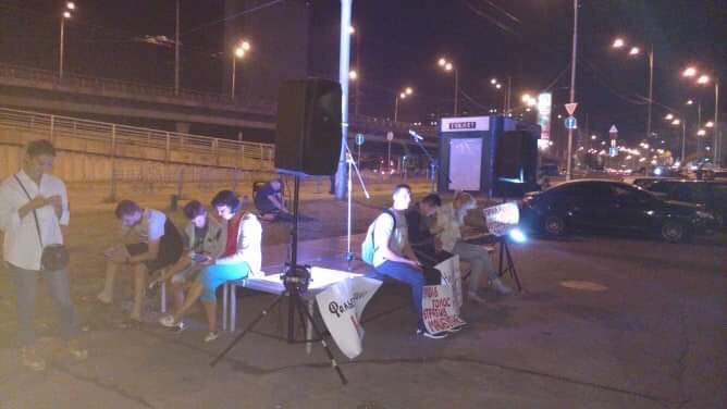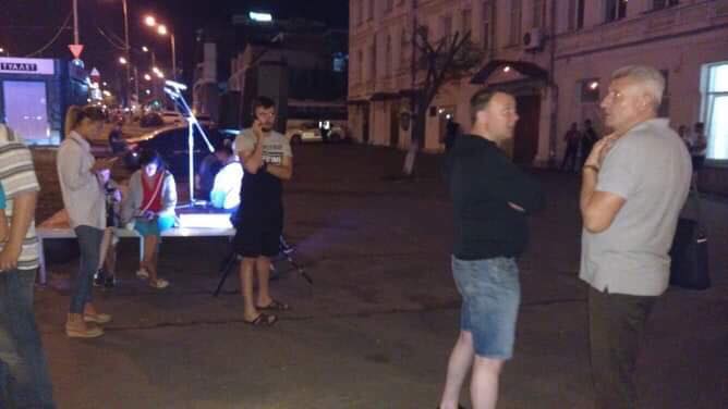 Митинг сторонников Юрченко собрался из-за того, что главный соперник кандидата от "Слуги народа" - секретарь Киевсовета Владимир Прокопив (баллотируется от "Европейской солидарности") объявил, что по экзитполу побеждает именно он. После этого под зданием окружной выборной комиссии Юрченко собрал группу поддержки, сами смонтировали сцену, с которой кандидат "Слуги народа" выступил с речью.