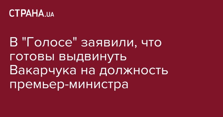 Глава партии "Голос" Юлия Клименко заявила о готовности политсилы выдвинуть ее основателя Святослава Вакарчука на пост главы Кабмина.