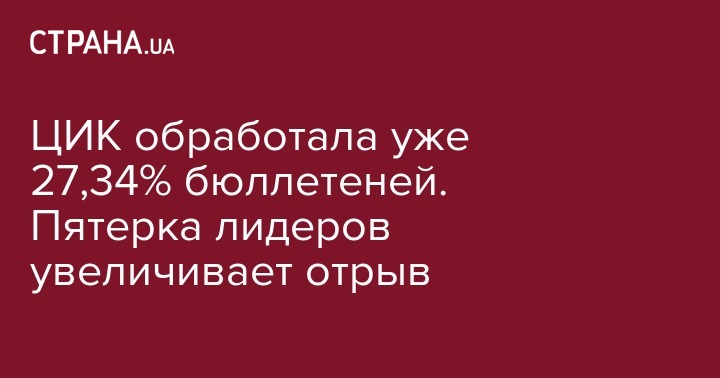 ЦИК обработала уже 27,34% бюллетеней. Пятерка лидеров увеличивает отрыв