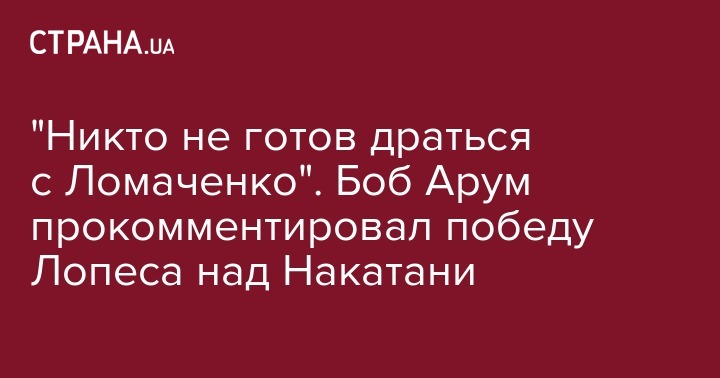 "Единственная хорошая вещь этого боя - мы узнали, что Лопес может пройти 12 раундов. Это всегда было вопросом в моей голове: "Может ли он пройти всю дистанцию?" И ответ: "Да, может". Он определенно не готов к Ломаченко, но никто не готов к Ломаченко. Может быть, если он победит Комми, то ему не стоит спешить драться с Ломаченко, а провести одну-две защиты титула перед боем с Ломаченко", - сказал Арум.