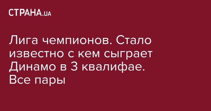 Лига чемпионов. Стало известно с кем сыграет Динамо в 3 квалифае. Все пары
