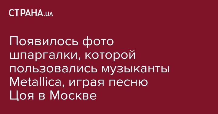 Музыканты американской группы Metallica для исполнения песни Виктора Цоя "Группа крови" пользовались помощью шпаргалки. Об этом сообщается в инстаграм-блоге концертного агентства Sav Entertainment.