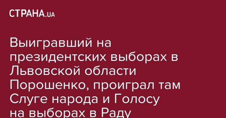 Выигравший на президентских выборах в Львовской области Порошенко, проиграл там Слуге народа и Голосу на выборах в Раду