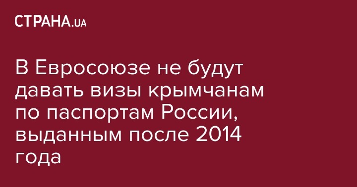 В Евросоюзе не будут давать визы крымчанам по паспортам России, выданным после 2014 года
