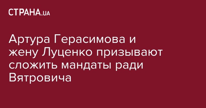 Кандидатов в нардепы от партии экс-президента Петра Порошенко "Европейская солидарность" Ирину Луценко и Артура Герасимова призвали сложит свои мандаты, чтобы в Раду прошел Владимир Вятрович, который оказался на грани прохода по результатам голосования.