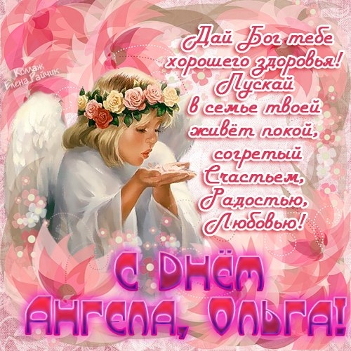 Оленька, с Днем ангела, пусть дни будут счастливыми и солнечными, желаю поступать мудро в любой затруднительной ситуации и находить выход из проблем и жизненных неурядиц.