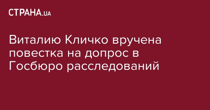 Мэру Киева Виталию Кличко вручили повестку на допрос в Государственное бюро расследований. Об этом сообщает источник "Страны" в КГГА.