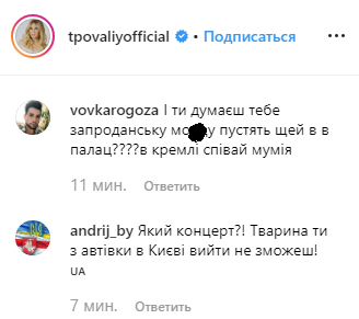 Сообщение о возвращении Повалий в Украину с концертом в Киеве вызвало у подписчиков артистки полярную реакцию. Некоторые пишут в комментариях о грядущем шоу с восторгом, другие - напротив - с гневом и даже угрозами.