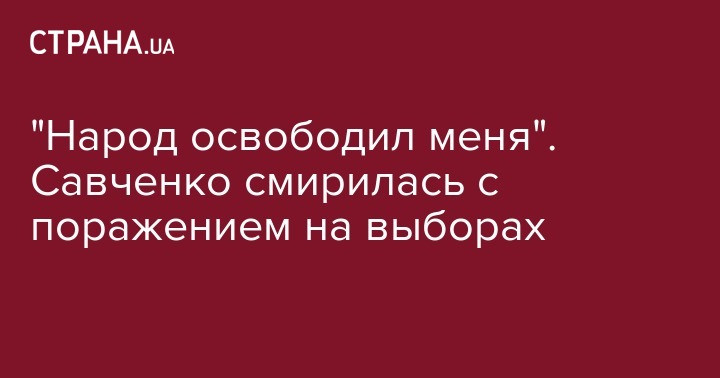 Нардеп и кандидат на выборах в Раду Надежда Савченко заявила, что смирилась со своим поражением и даже чувствует удовлетворение от того, что избавилась от ответственности. Об этом она сообщила на своей странице в Facebook.