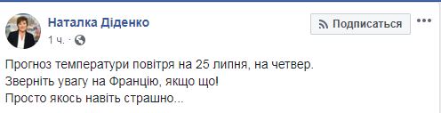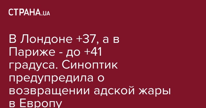 В четверг, 25 июля, в Европу вернется африканская жара. Особенно достанется жителям Парижа - там температура воздуха достигнет 41 градус тепла. Об этом в Facebook сообщила синоптик Наталья Диденко.