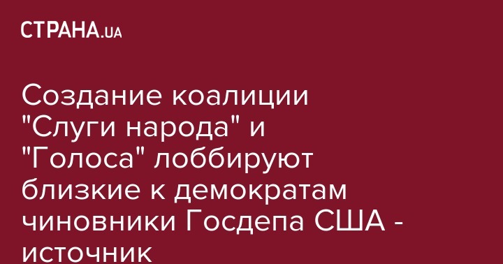 Источники "Страны" в лоббистских кругах США, близких к Госдепу, подтверждают, что в Вашингтоне хотели бы видеть коалицию "Слуги народа" и "Голоса". В тоже время источник добавляет, что эту тему лоббирует в первую очередь часть чиновников Госдепа, близких к демократам.