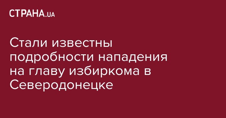 Как сообщала "Страна", в Луганской области председателю избирательной комиссии выбили глаз. 4 июля в 21:30 поступило сообщение от местного жителя о том, что у подъезда дома №43 по проспекту Гвардейском г. Северодонецк лежит человек. Пострадавшего госпитализировали в реанимацию местной больницы.