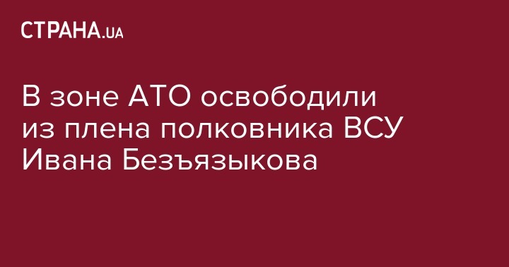 Во вторник, 5 июля, вечером в зоне АТО освободили полковника ВСУ Ивана Безъязыкова. Об этом на своей странице в социальной сети Facebook сообщила представитель Украины в подгруппе по гуманитарным вопросам Трехсторонней контактной группы и первый зампредседателя Рады Ирина Геращенко.