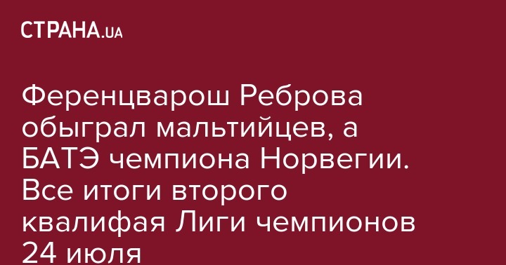 В среду, 24 июля, в Европе завершились первые матчи второго раунда квалификации Лиги чемпионов. Отметим, что Ференцварош Сергея Реброва (за клуб выступают и три украинских легионера - Прим.Ред.) без проблем разобрался на своем поле с мальтийской Валеттой со счетом 3:1.