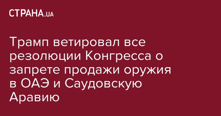 Трамп ветировал все резолюции Конгресса о запрете продажи оружия в ОАЭ и Саудовскую Аравию